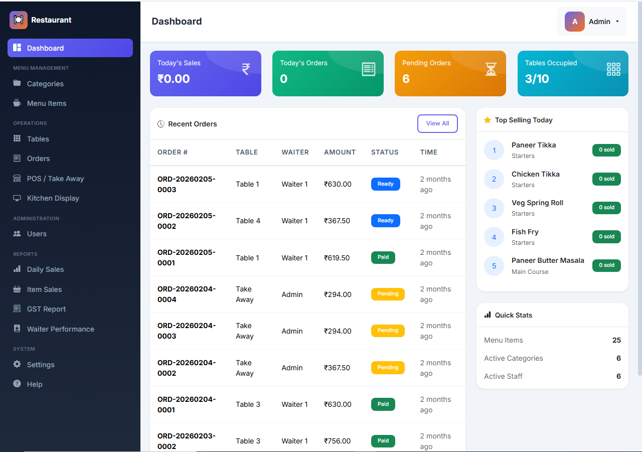 POS Billing • KOT Kitchen • Inventory • GST Reports • Cloud Backup